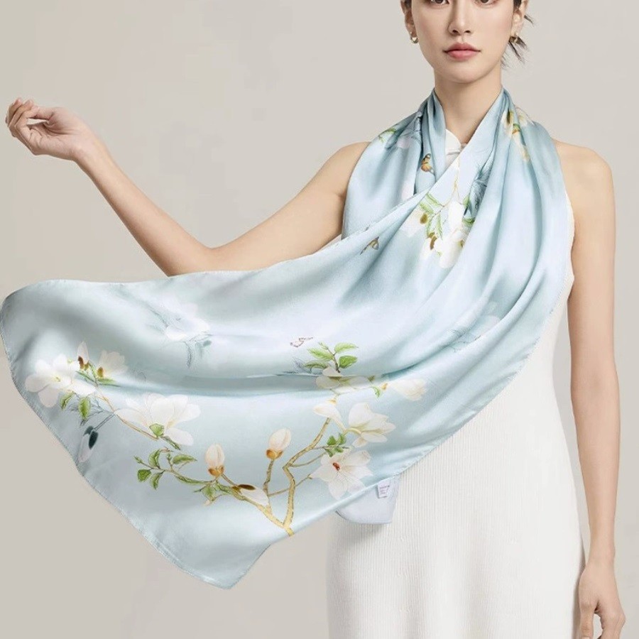 Give the gift of eternal spring with the Square Silk Scarf. This piece is more than an accessory, it’s wearable art. Featuring an original, hand-drawn floral design, this scarf instantly brightens any look. It’s crafted from 100% Silk from the finest natural fibres,. This combination of world-class craftsmanship and unique artistry makes it one of our most popular designs and a truly unique luxury Christmas gift. Whether you wear it as a chic Parisian necktie, a structured