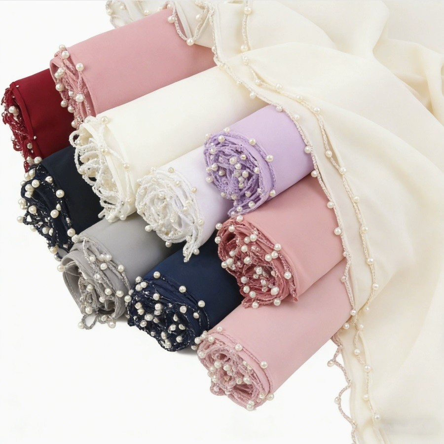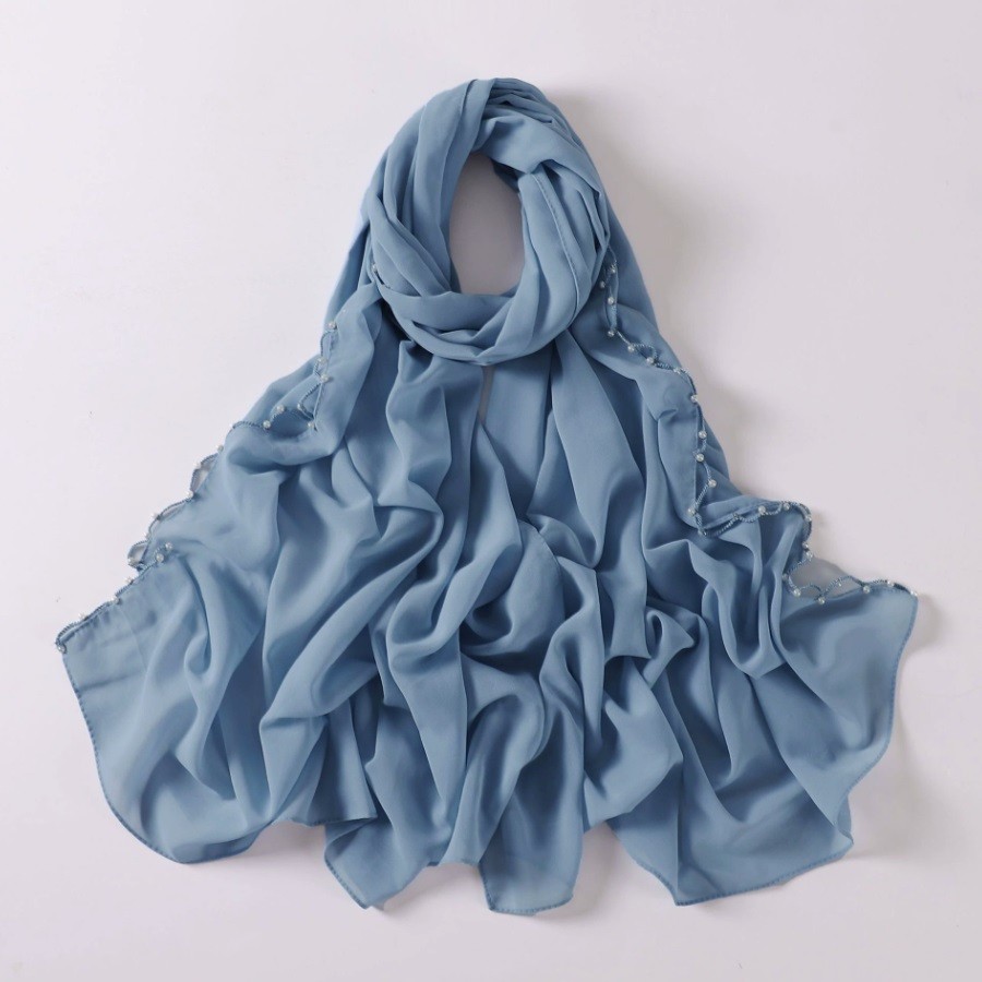 Home      Products     Hijab     Chiffon Hijab       Long Scarf Pearl Beaded Solid Color Hija