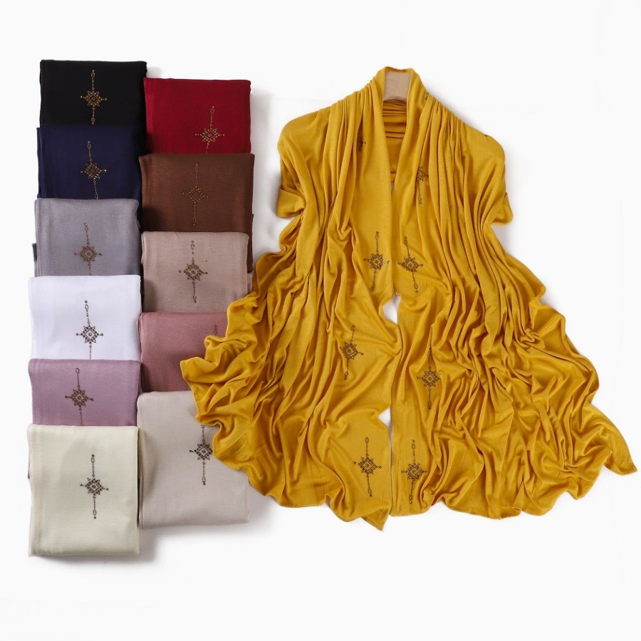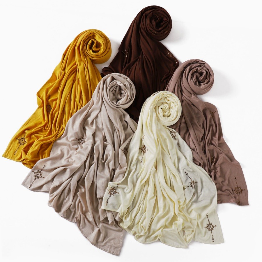 • Women Premium Stone Jersey Hijab Soft Solid Color Hijab Shawls and Wraps Muslim Stretch Jersey High Quality Cotton Head Scarf